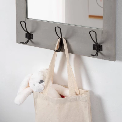 - DOUBLE SIDED HOOKS: This edition of the Cates wall mirror has three large hooks on the bottom that are double-sided, giving you multiple storage opportunities for coats, backpacks, keys, and more