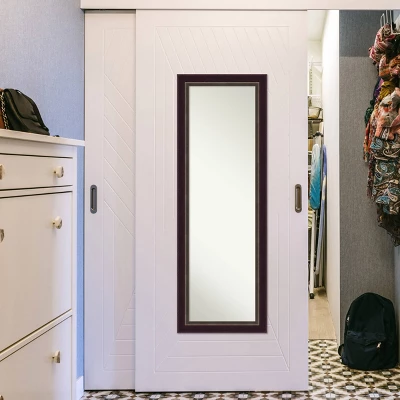 This 100% real wood, full-length Non-Beveled Mirror framed in the Signore Bronze frame, complements your decor without the need for unsightly over-the-door brackets. Individually made using traditional custom framing techniques, it has the quality you would expect from your local frame shop. It holds its value with premium finishing that can be appreciated up close. Our On The Door Mirror has two hooks to hang directly on your door or wall without additional anchors or brackets. Hang it on the back of a closet, bedroom or bathroom door, or on the wall as a standard full-length mirror. Because of our attention to detail and focus on artistry, architects, interior designers, and homeowners alike choose this mirror to create beautiful living spaces.