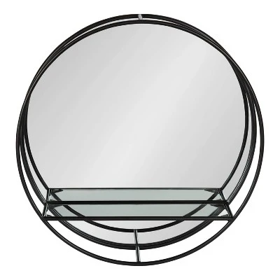 19″ Diameter Kei Modern Round Accent Mirror With Shelf Black – Kate & Laurel All Things Decor