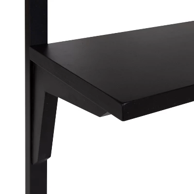 Decorate your walls while incoprorating a space-saving storage solution with the Meridien shelf from Kate and Laurel. This shelf has a transitional, convenient design, featuring two tiers of shelving for your storage and display needs. The Meriden was created with a robust, premium poplar wood, giving it a unique woodgrain and resilient quality. Its black finish on the wood allows this shelf to seamlessly blend in to a variety of decor aesthetics. The overall dimensions of these shelves are 24 inches wide by 8 inches deep by 24 inches tall, giving you two tiers to use for storage and display. It makes a great storage solution for bathroom supplies, decorative plants, or kitchen necessities. You can also use the Meridien as a modern display for your favorite photos, keepsakes, trophies, and more. The 5 lbs. weight capacity per shelf gives you the opportunity to create the wall display of your dreams. Use the metal keyhole hangers embedded in the back of the Meridien shelf for hassle-free installation in a matter of minutes.