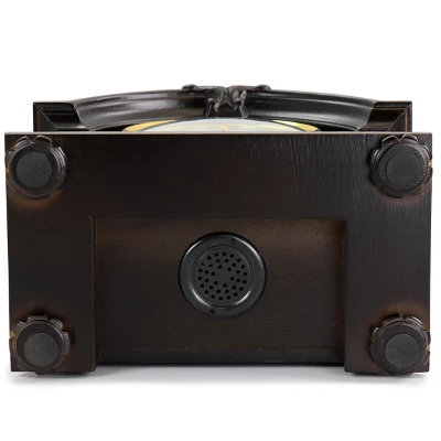 This exquisite Mantel clock features a dark finish. Rich and deeply colored it is timeless and exquisite. Bright dial features classic Roman Numeral markings. This classic Mantel clock is a stunning addition to any room, whether it is above a fireplace or on a desk, this piece will add a cozy feel to your home. Features 4 chime modes and a volume control toggle.