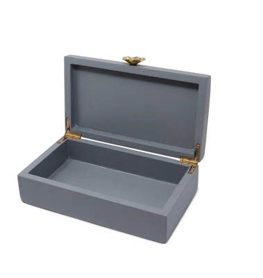 This beautiful, grey wood decorative box brings a touch of elegance to any space. It is detailed with a gold flower opener that adds a luxurious flair. Store away your precious items, from jewelry to keepsakes, in this charming box. It is a timeless and sophisticated piece to keep in the home. The wood is designed to last and the gold accents give a subtle yet stylish hint of luxury.