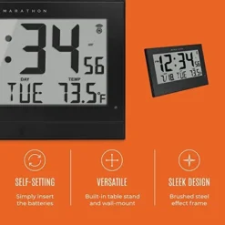 Marathon Atomic 10 Inch Wall Clock With Automatic Backlight, 8 Time Zones And Indoor Temperature
