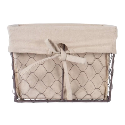 Enhance your home organization with this versatile set of 5 wire baskets accompanied by removable liners. The set includes 1 Extra Large basket measuring 18x13x8 inches, 2 Medium baskets measuring 11×7.88×7 inches, and 2 Small baskets measuring 9x7x6 inches. These baskets and liners are food safe, making them perfect for storing fruits, vegetables, canned foods, baking supplies, cleaners, and more.The machine washable fabric liners ensure that they maintain their size and shape even after washing. The Poly-Cotton blend construction of the liners adds durability. The metal baskets can be easily wiped with a soft cloth. With their Rustic Farmhouse look, these baskets add charm to your farmhouse kitchen and can be used as decor or functional pieces. Crafted with vintage-inspired style, these antiqued finish wire baskets feature a sturdy frame and removable machine washable fabric linings. They offer stylish storage options for books, magazines, accessories, towels, crafts supplies, and more. The removable Cotton-Poly blend liners hold their shape when washed, making them suitable for kitchens, playrooms, linen closets, and bathrooms.