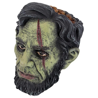 The zombies nabbed our 16th president and there s not even a stove pipe hat big enough to hide that big ol hole in his head! Our Design Toscano-exclusive, post apocalypse President Lincoln is cast in quality designer resin and hand painted to amp up the gory flesh-eating hues that define the havoc of the undead. The upside is that Honest Abe s exposed brain opening in this crazy collectible sculpture is perfect for pens, pencils, scissors, mini-machetes and any other desktop-scale Zombie killing tool you might like to keep around. A great gift and the perfect workplace conversation starter! 5 Wx7 Dx6 H. 2 lbs.