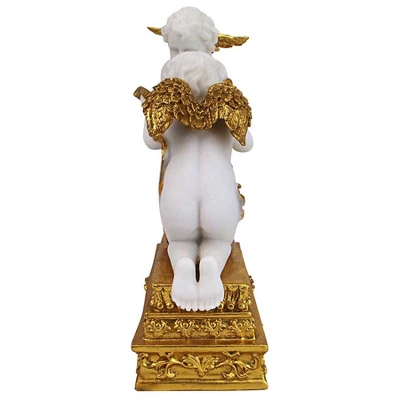 Ornately carved putti flank the French Empire stylings of this lush timepiece, sure to create an elegant statement atop mantel or sideboard. Our sophisticated baby angels are cast in designer resin and finished in faux gilt gold and ivory. The cherubs adorn a contemporary-quality quartz clock that boasts Roman numerals and accepts your two AA batteries. 9½”Wx4″Dx10½”H. 5 lbs.