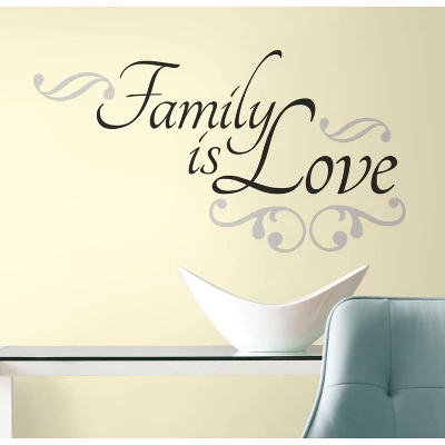 Spruce up your entranceway, hallway, living space, or bedroom with this ‘family is love’ quote wall decal. This simple graphic design will add life to any wall, and show what is important to you. Application is easy: just peel each pre-cut element from the sheet, then apply it to the wall (or any other smooth surface). Our removable and repositionable wall decals can be moved around any time you please, and will never pull off the paint or leave behind a sticky residue. A great gift idea for anyone in the family!