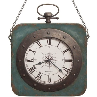 - Enhance your home with the Windrose hanging wall clock from Howard Miller. This iron timepiece imparts industrial flair to any space with its antiqued finish and metal chain.