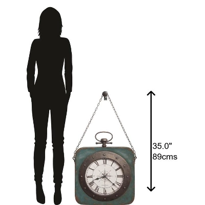 - Ready to Hang: Included with this antique clock is an iron-finished metal peg for hanging. Suspend this timepiece by its rugged metal chain, which has an understated look that coordinates with the distressed finish.
