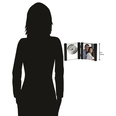 - HIGH QUALITY: The design is a home essential with a polished silver-tone bezel suspended in a clear glass panel. Tell time with a satin silver-finished center, a diamond-cut, silver-finished metal outer ring, hour markers, and Roman numerals, black hands, silver alarm hand, and glass crystal to stand out over the dial. MOVEMENT: The portrait clock holds a 4 inch by 6-inch photo. It is powered by quartz alarm movement and requires one AA sized battery.