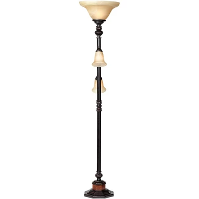 - Kathy Ireland Sonnett traditional floor lamp in a bronze finish.
