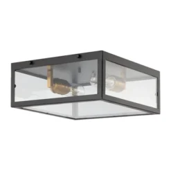 14″ Marfa Glass/Iron Farmhouse Modern LED Flush Mount – JONATHAN Y