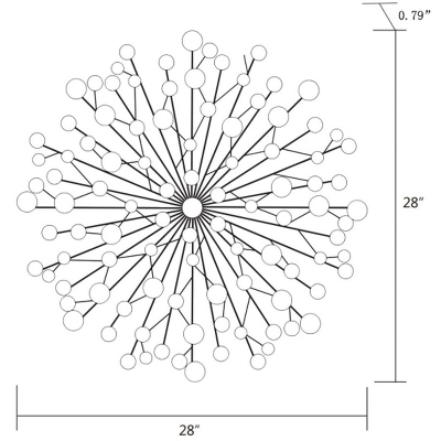 This modern abstract wall decor is crafted from metal and finished in multiple soothing color tones of silver and gold. It is a beautiful artistic statement for any living space in your home. Enjoy this abstract wall art with its circular shapes in soft colors. With its abstract circle design, the modern wall decor is a stylish contemporary piece of art. It resembles a dandelion with its metal rods in black finish protruding from the center, smaller rods connected to main rods, and each rod has a various metal circular disk in either silver or various shades of gold. It hangs easily using screws already included.