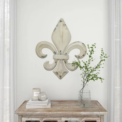 This decor’s oversized carved design makes them a focal point piece for homes with plenty of open spaces and vintage-themed home interiors. This item ships in 1 carton. Features an extra-large ‘Fleur De Lis’ carved wall sculpture. Can be hung vertically using the keyholes on the back; nails and screws not included. Suitable for indoor use only. This item ships fully assembled in one piece. This is a single white colored wall sculptures. Vintage style.