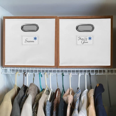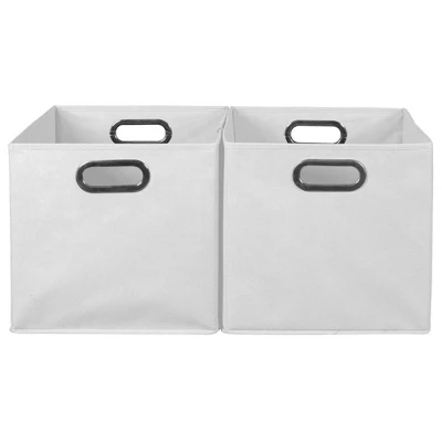 Find your Niche with versatile and modern Niche Fabric Storage Bins! Strong and durable, these bins each include a reinforced bottom panel that adds an extra layer of stability. With the bottom panel in place, they are sturdy enough to use on their own to hold files, scrapbook paper, children’s toys, towels, craft supplies and more. The bottom panel comes out and the entire bin folds flat for easy storage when not in use. Folded bins even fit perfectly inside an open one! Chrome handles are built into two sides of the bin, which makes carrying and moving it easy and worry-free. Inset handles are stronger than sewn-on cloth handles and won’t come unstitched or separate at the seams like cloth handles could. Measuring 12 x 12 x 12, Niche Fabric Bins are truly square and integrate seamlessly into Niche Cubo storage cubes. They can be used in any direction- there is no “right” side to face front because all sides measure the same! Personalize your bins by using the clear label holder on one side. Quickly and easily identify contents or assign bins to individual students. Ideal for every room in the house, make this set of 2 White Niche Folding Fabric Bins a part of your home or office today!
