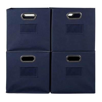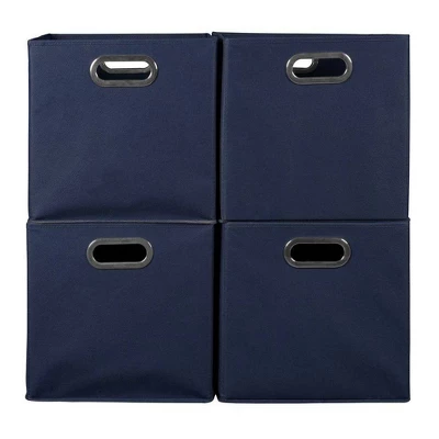 Find your Niche with versatile and modern Niche Fabric Storage Bins! Strong and durable, these bins each include a reinforced bottom panel that adds an extra layer of stability. With the bottom panel in place, they are sturdy enough to use on their own to hold files, scrapbook paper, children’s toys, towels, craft supplies and more. The bottom panel comes out and the entire bin folds flat for easy storage when not in use. Folded bins even fit perfectly inside an open one! Chrome handles are built into two sides of the bin, which makes carrying and moving it easy and worry-free. Inset handles are stronger than sewn-on cloth handles and won’t come unstitched or separate at the seams like cloth handles could. Measuring 12 x 12 x 12, Niche Fabric Bins are truly square and integrate seamlessly into Niche Cubo storage cubes. They can be used in any direction- there is no “right” side to face front because all sides measure the same! Personalize your bins by using the clear label holder on one side. Quickly and easily identify contents or assign bins to individual students. Ideal for every room in the house, make this set of 4 Blue Niche Folding Fabric Bins a part of your home or office today!