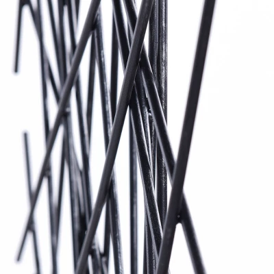 Pixie Art brings an exciting and erratic display of multicolored metal segments contained within in a tidy rectangle. The form features slender rods crisscrossing over one another in every direction, yet still maintaining a clean perimeter. This modern metal wall art can mount horizontally or vertically, aligning neatly with the surrounding decor.
