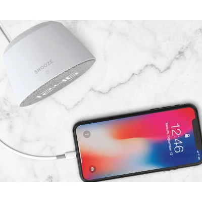 The Round Time Table Clock from Capello is a small, lightweight alarm clock that fits right in on your nightstand. It provides the option to plug in your phone to charge, and it has a gray fabric face for a stylish look. It comes with a snooze function on the top and has three brightness settings to suit your preference. This clock is, electrically, operated (the battery back-up does not power the clock). The battery back-up is used to store the time and alarm settings, if power is interrupted.