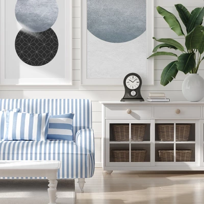 From its curved shape to its slightly distressed black finish, the James Mantel Clock is more than just a timepiece – its an artful addition to any mantel or table. With a precisely craften wooden case, this clock features a glass cover and metal pendulum. Westminster/Whittington chimes play on the quarter-hour and create a charming complement to the hourly strikes, while a volume control and nighttime chime silencer complete the design.