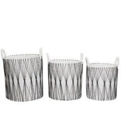 16.75″H And 11.75″H Sullivans Beaded Tassel Basket Urn Set Of 2; White