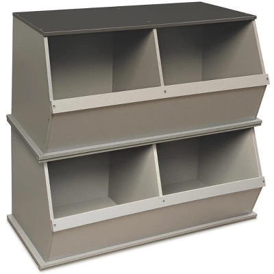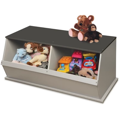 Badger Basket’s Two Bin Stackable Storage Cubby/Bin is a sturdy, modular storage solution for keeping all sorts of items tidy in any room. Features two, large, open compartments and it can be stacked with other bins to expand your storage capacity (each unit sold separately). Use for storing books, papers, media, dolls, toys, sporting goods, games, craft supplies, linens, and more! Wide mouth openings make it easy to load and unload. When you need to clean up quickly, it is a breeze to stuff everything inside! Great for kids when learning to sort and organize. Top surface offers an additional place to keep collections and treasures. Easy to clean, solid panel, smooth surface construction. Made of engineered wood with melamine lamination. Badger Basket’s Two-Bin units can mix and match with Badger’s Three-Bin and Shelf Storage units. Overall unit measures approximately 37.25 inches L x 19.25 inches W x 17.25 inches H. Each bin measures 16.75 inches L x 17.25 inches W x 15.75 inches H. Height from floor to top edge of front panel is 9.25 inches. Assembled weight: 30.5 pounds. All measurements approximate. Wipe clean and dry thoroughly. Adult assembly required. When stacking multiple bins, you must always use the included safety brackets to secure the units together. If stacking three or more bins high, we recommend using wall anchor/furniture safety straps (not included) to anchor the units to the wall for safety. Wall anchor straps are not included due to the many types of walls found in homes. Please consult with your local hardware retailer. Product may vary slightly from shown. Props/accessories shown are for illustration purposes only. Product complies with all currently applicable safety standards. Actual color/finish may vary from screen display. This item ships in its original carton that may include a product photo. Soft plastic/rubber toys (such as balls) can react with the finish when left in prolonged contact. Be mindful of what is stored in the unit.