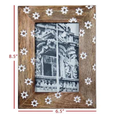 Exclusively from Foreside Home & Garden, this 4×6 photo frame is the perfect addition to your boho home dĂ©cor. Crafted from sustainable natural mango wood, featuring a hand carved dainty floral design hand painted white. The natural wood grain accented by the florals create a dimensional and textural border for your favorite photo memories. The glass front will help to protect your photo from dust and other damage. Easily styled on your shelf, desk, side table, mantel, or hung on a wall for a versatile display anywhere in your home.